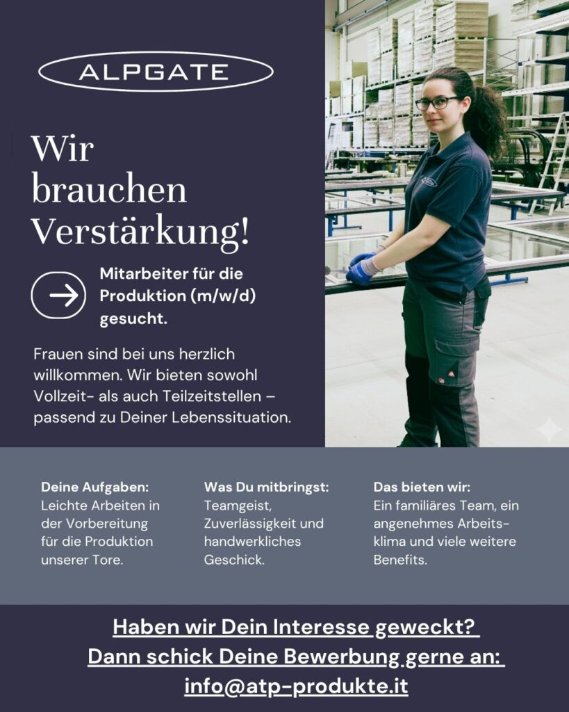 Klingt gut? Dann freuen wir uns auf Deine Bewerbung: info@atp-produkte.it