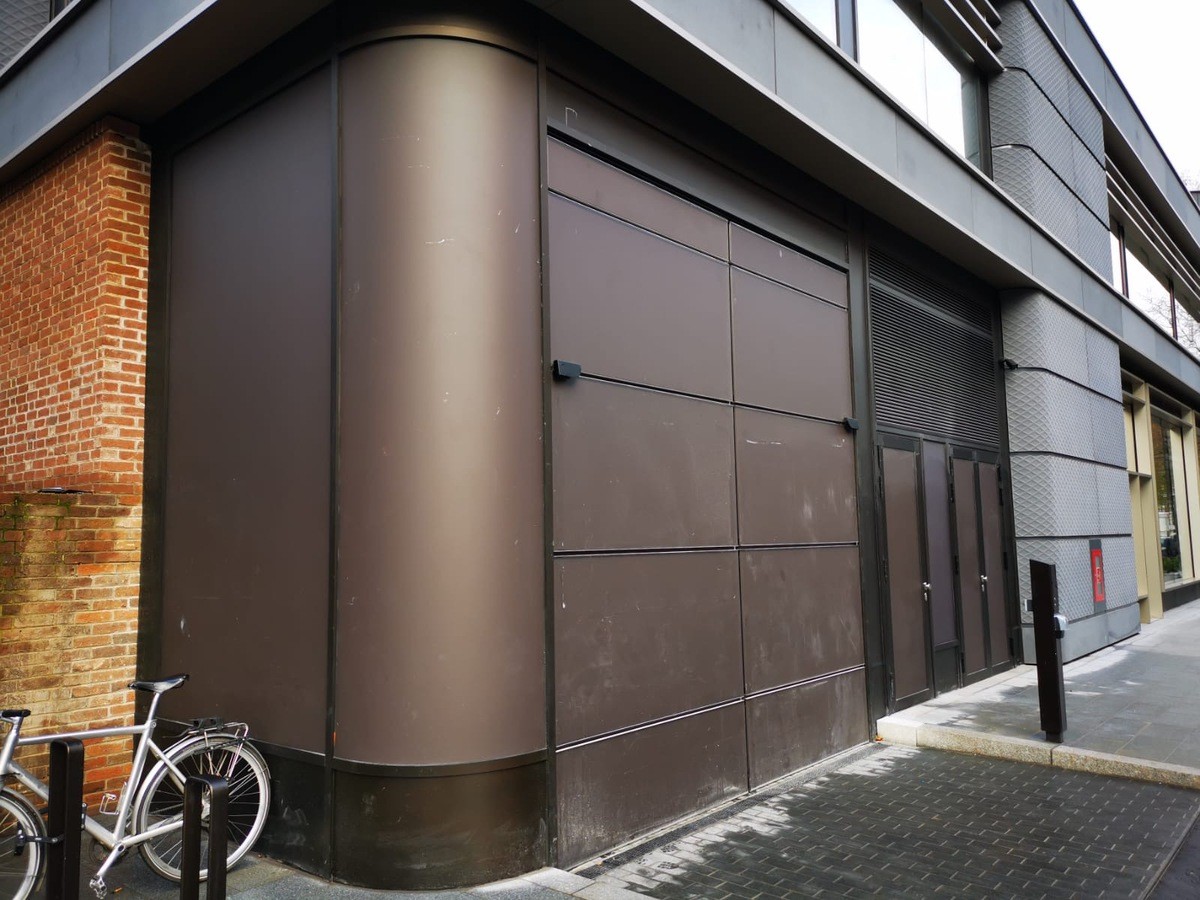 The door surface is clad with the same material as the façade, or a material that matches it. This creates a calm, cohesive appearance in which the door is not perceived as a technical element. The grid pattern, joint layout and surface finishes are retained.